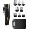 Zastrihávač vlasov je vybavený technológiou Direct Drive, ktorá umožňuje okamžité napájanie zo siete aj počas nabíjania, takže môžete prístroj používať, aj keď je batéria úplne vybitá. Funguje ako na akumulátor, tak priamo zo zásuvky. Jeho výkonný a zároveň veľmi tichý profesionálny motor si bez problémov poradí aj s hustými vlasmi, fúzmi alebo chĺpkami. Kvalitné brity s titánovým povrchom zaisťujú presný a rovnomerný strih. V balení nájdete osem výmenných nástavcov na úpravu dĺžky od 3 do 25 mm, šírka čepele je 46 mm. Ergonomická rukoväť s chrómovaným povrchom skvele padne do ruky a nešmýka sa. Zastrihávač má výdrž až 60 minút na jedno nabitie, pričom sa úplne nabije už za 2 hodiny, čo je až štyrikrát rýchlejšie ako pri bežných modeloch. Praktický prepínač ON/OFF, grafický indikátor dĺžky strihu aj LED kontrolka stavu nabitia uľahčujú používanie. Zastrihávač je dodávaný s bohatým príslušenstvom vrátane čistiacej kefky, oleja, hrebeňa, všetkých výškových nástavcov a cestovného plastového puzdra. Dĺžka napájacieho kábla je 195 cm. Prístroj váži iba 120 ga jeho rozmery sú 174 × 52 × 32 mm.