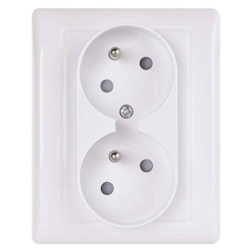 zásuvka dvojnásobná s ochrannými kontaktmi a detskými clonkami typ: 250 V~/16 A max. farba: biela (lesk) spôsob montáže: do krabice krytie: IP20 prevedenie: 2 nás.
