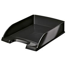 Atraktívna zásuvka v dizajne radu Leitz Plus v elegantnej čiernej farbe Vyrobená z pevného plastu; kolmé aj predsadené stohovanie Výrez pre ľahký prístup k uloženým dokumentom Formát A4; kapacita odkladania …