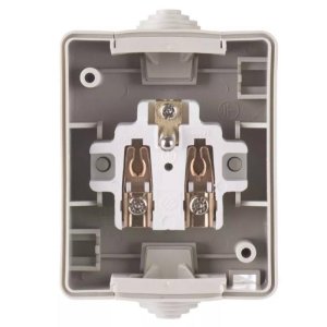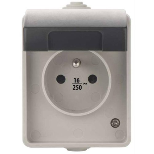 produkt: zásuvka s ochranným kolíkom a viečkom design: FRENCH typ: 250 V~/16 A max. farba: šedo-čierna spôsob montáže: na stenu krytia: IP54 prevedenie: 1 nás.
