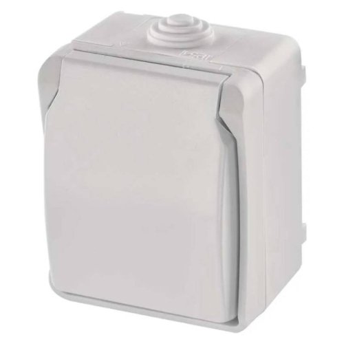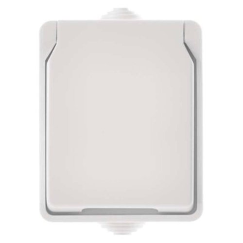 zásuvka jednonásobná s ochranným kolíkom a viečkom design: FRENCH typ: 250 V~/16 A max. farba: biela spôsob montáže: na stenu krytie : IP54