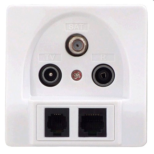 Účastnícka koncová zásuvka TV/R/SAT/RJ-45/RJ-11 patrí do série, ktorá integruje anténne systémy FM/TV/SAT s telefónnou sieťou a LAN .