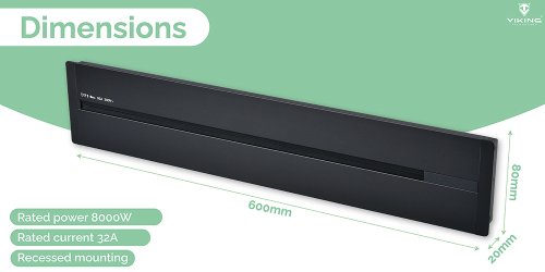 Technické špecifikácie: Model: Zásuvková lišta - zápustná Viking LZ60 Typ zásuvkovej lišty: Zápustná Materiál: hliníková zliatina Menovitý výkon: 8000 W Menovitý prúd: 32 A Menovité napätie: 230V Menovitá frekvencia: 50 Hz Menovité izolačné napätie cm x 2 cm x 60 cm Hmotnosť: 800g