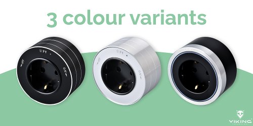 Zásuvkový modul Viking A40 je vybavený AC výstupom 230 V (16 A, 50 Hz) a je k dispozícii v troch farebných variantoch.