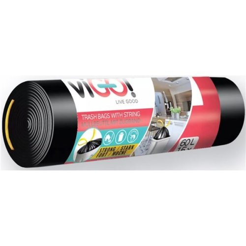 Pevné zaťahovacie vrecia na odpadky z LDPE So zaťahovacou páskou pre ľahké uzatváranie Balenie 15 vriec, 25mic Objem: 60,0 l Vzhľad výrobku sa môže v priebehu platnosti katalógu meniť