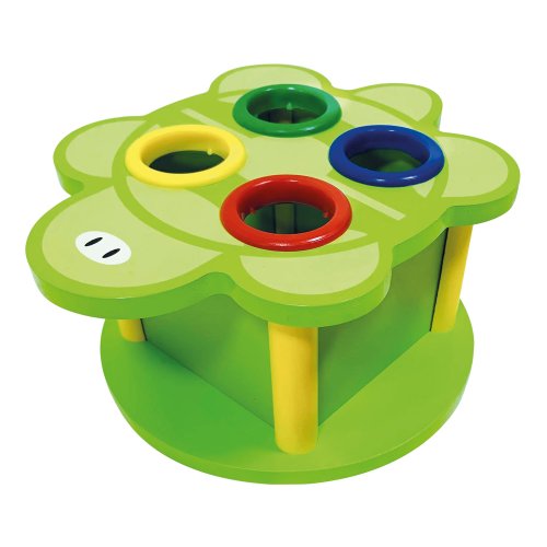 Farebná zatĺkačka korytnačka so 4 loptičkami. Hra je vyrobená z masívneho a kvalitného dreva má pevnú konštrukciu, ktorá vydrží roky klepania bez deformácie. Každá loptička má na vrchu korytnačky špecifický otvor pre svoju farbu. To je skvelá funkcia, ktorá vášmu dieťaťu pomôže rozpoznať a zladiť farby. Táto hra s kladivom, špeciálne navrhnutá pre malé ruky, je ideálna pre raný tréning detí. Hračka môže pomôcť rozvíjať koordináciu ruka-oko. Dobrá voľba ako darček pre chlapcov a dievčatá. Vek: od 3 rokov, rozmery predmetu: