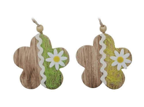 Drevený záves s motívom kvetu, ideálny na dekoráciu interiéru alebo záhrady.