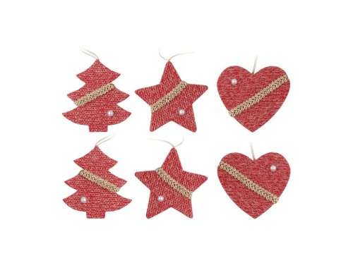 Táto sada 6 závesných ozdôb o veľkosti 60 mm je ideálna pre vytvorenie hrejivej vianočnej nálady. Ozdoby v tvare srdca, hviezdy a stromčeka majú jemný pletený dizajn, ktorý dodáva dekoráciám ručne vyrábaný, domácky vzhľad. Červené prevedenie krásne zapadá do tradičnej vianočnej výzdoby a perfektne vynikne na stromčeku, vetvičkách, vencoch aj sviatočných aranžmánoch. Každý kus je ľahký, ľahko zavesiteľný a vďaka mixu tvarov dodá výzdobe príjemnú pestrosť. Skvelá voľba pre útulnú sviatočnú atmosféru.