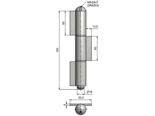 Na otočné spojenie veľkorozmerových krídiel dverí alebo brán so zárubňou.