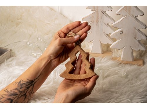 Záves drevo 100x100 mm stromček, srdce, hviezda mix, prírodný