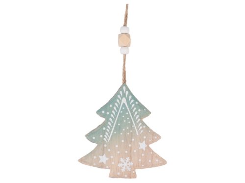 Záves drevo 105x115mm stromček, prírodný, modrá