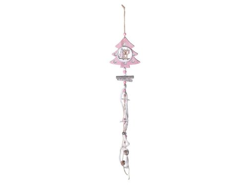Záves drevo 120x120mm Sob vo vnútri stromčeka, ružová, biela