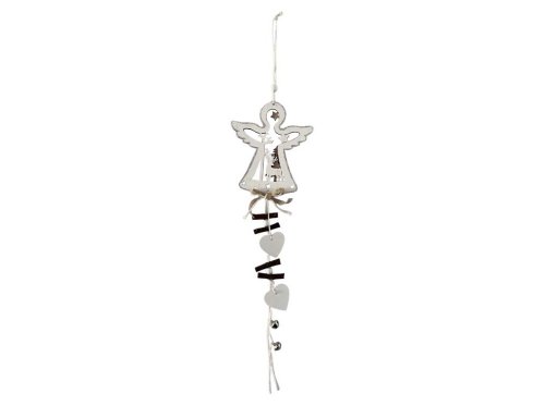Záves drevo 125x140mm Anjel, prírodný s glitrom, biela