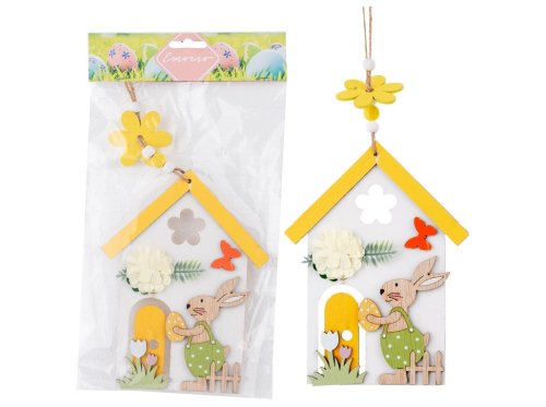 Záves drevo 135mm domček s veľ. zajačikom, prírodná, farebná