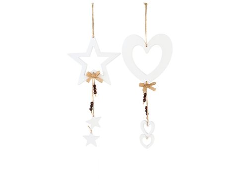 Záves drevo 157x150/150x150 mm, hviezda, srdce mix, biela
