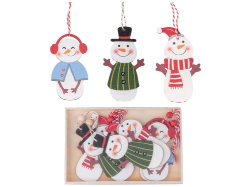 Sada 6 kusov závesných drevených dekorácií s motívom roztomilých snehuliaka v rôznom farebnom prevedení. Každý záves má veľkosť 60×100 mm a je opatrený šnúrkou pre ľahké zavesenie. Dekorácie sú ideálne na zimnú a vianočnú výzdobu domácnosti – skvele vyniknú na vianočnom stromčeku, vetvičkách, oknách, adventných závesoch alebo ako doplnok darčekového balenia. Farebný mix dodá aranžmán živosť a hravosť, zatiaľ čo drevené prevedenie pôsobí prirodzene a útulne. Tovar je dodávaný v mixe. Doručovaný tovar je vyberaný náhodne a nie je možné vybrať konkrétne prevedenie.