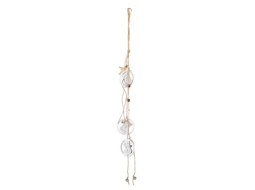 Záves drevo 60x60 mm, topánka vo vnútri guľôčky s rolničkou, biela