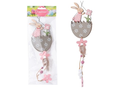 Záves drevo 85x135mm zajac v škrupine, prírodná, hnedá, ružová, biela