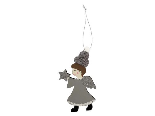 Záves drevo 90x150mm Anjel, prírodný s gliterm, šedá