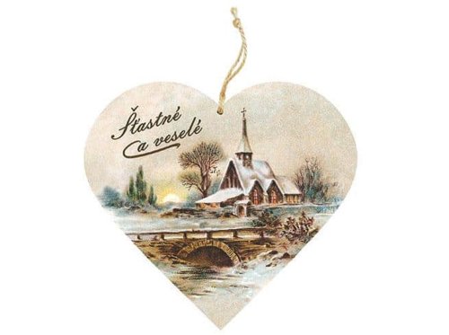 Záves drevo srdce 120 mm - Kostol