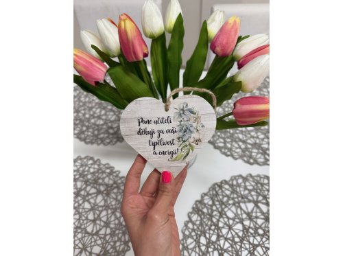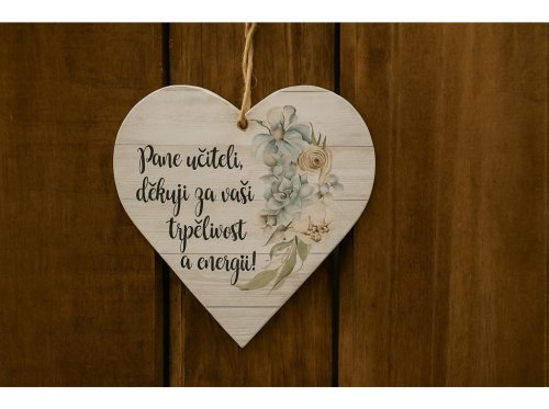 Krásny a srdečný darček, ktorým vyjadríte vďačnosť pánovi učiteľovi za jeho trpezlivosť, podporu a vedenie. Drevené srdce o veľkosti 120 mm je ozdobené jemnou potlačou s nápisom „Pane učiteľovi, ďakujem…“, ktorý zahreje pri srdci a zanechá trvalú spomienku.