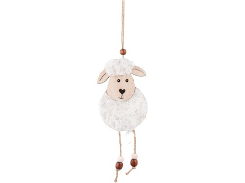Záves drevo, textil 75x110mm ovečka, prírodná, biela