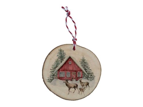 Záves drevo Vianočná ozdoba 60 mm - Domček a srnky