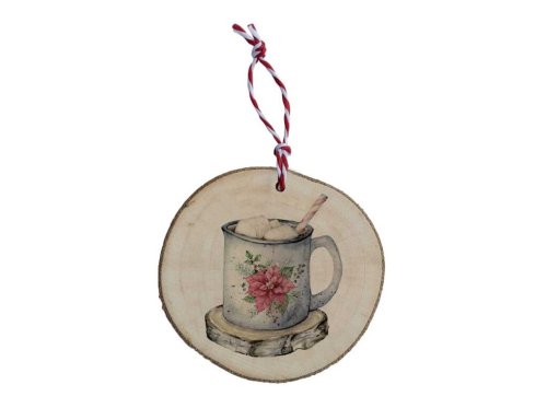 Záves drevo Vianočná ozdoba 60 mm - Hrnček s čokoládou