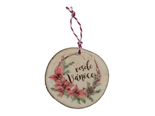 Záves drevo Vianočná ozdoba 60 mm - Veselé Vianoce