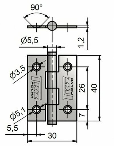 Záves dverný 40 mm KZ Zn MO (50 ks).