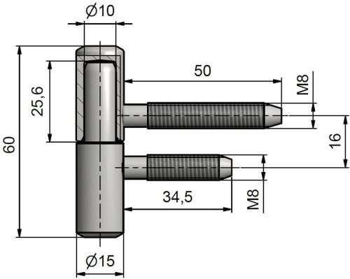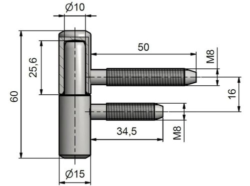 Záves dverný 60/10 M8/50 mm Zn ŽL