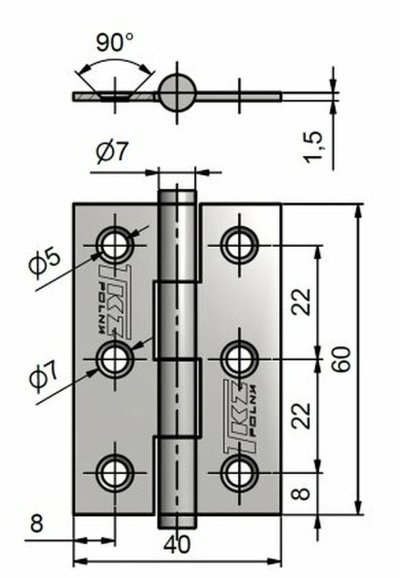 Záves dverný 60 mm KZ Zn MO (20 ks).