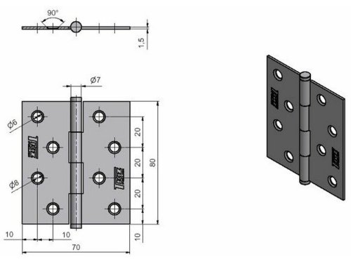 Záves dverný 80 mm KZ Zn MO (50 ks).