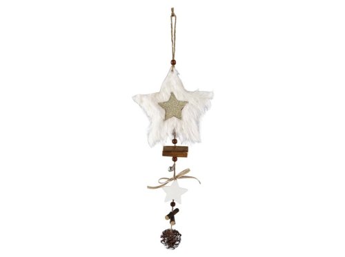 Záves filc, drevo 150x150mm hviezda, prírodná, biela