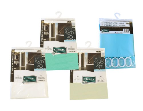 Obyčajný kúpeľňový záves vyrobený zo 100% PEVA, ktorá je príjemnejšia na dotyk a praktickosťou využitia Všetky kúpeľňové závesy už obsahujú v balení závesné krúžky.