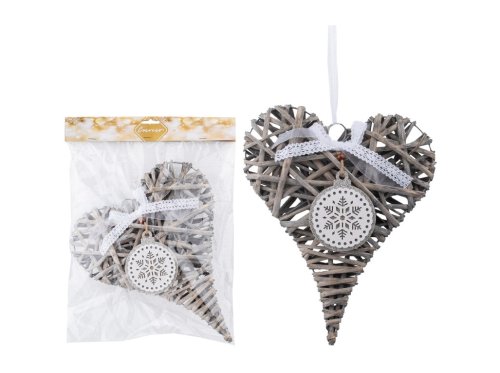 Záves prútia 240x300mm ván. srdce, šedá, biela s glitrom