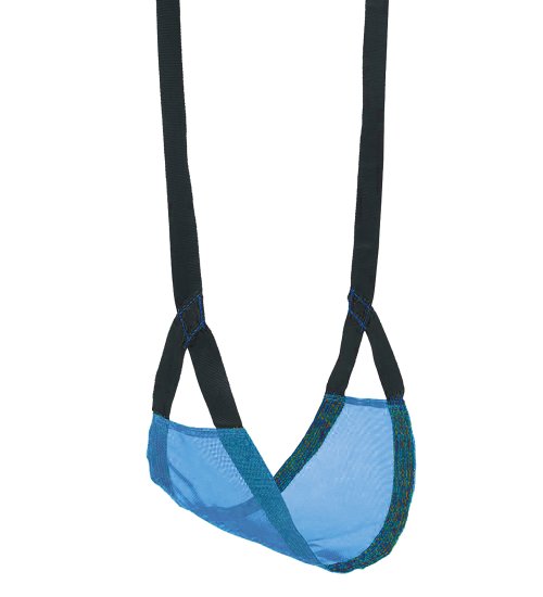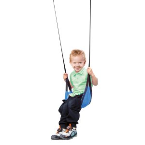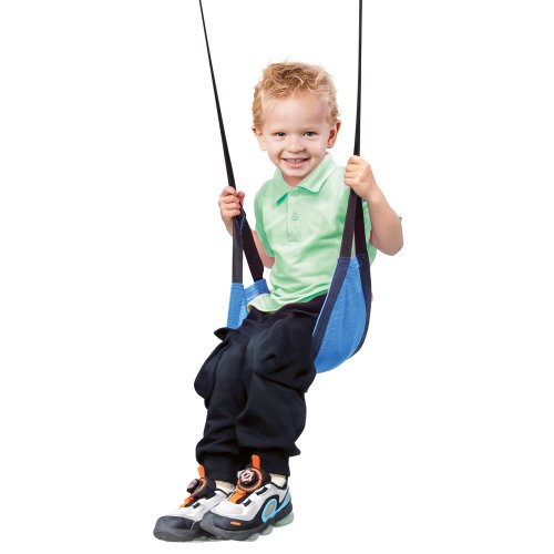 Detská modrá hojdačka, vyrobená z nylonových a polyesterových vlákien. Hojdačka je priedušná nekĺzavá a odolná. Je skladná a ľahko sa prenáša. Kovová spona umožňuje prispôsobenie dĺžky lana podľa veľkosti dieťaťa.