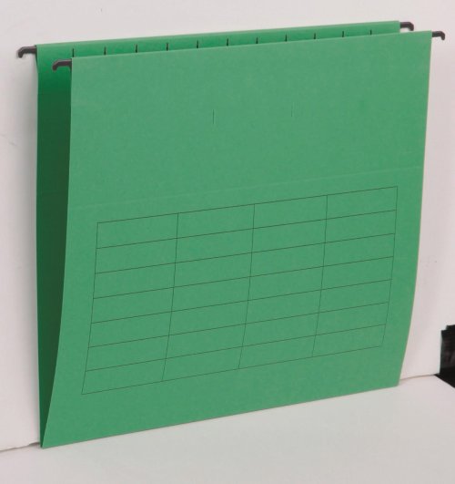 Štandardné závesné papierové dosky s posuvným plastovým vymeniteľným rozlišovačom V-dno Dlhá životnosť – dosky sú vyrobené zo 100% recyklovaného kartónu 220 g/m2 Plastový rozlišovač s vymeniteľným …