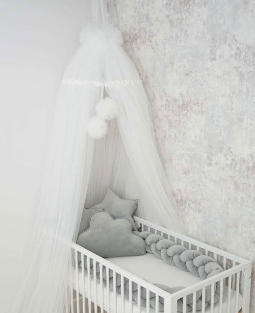 Závesné stropné luxusné nebesá s brmbolcami-baldachýn Belisima. Nebesá zavesené nad posteli, alebo postieľkou zaistia pokojný spánok bez nepríjemného hmyzu. Sú veľmi užitočné v teplých letných dňoch, alebo ako skvelá dekorácia. Umožňujú voľný priechod vzduchu. Nebesá sú zdobené krásnymi brmbolcami. Upevňujú sa zavesením do stropu. Pred praním baldachýnu je potrebné vybrať kruh, ktorý je súčasťou vrchnej časti baldachýnu. Dodávané bez upevňujúceho zariadenia do stropu. <BR>Zloženie baldachýnu: 100% polyester<BR>Priemer kruhu: cca 52 cm<BR>Maximálna výška: cca 230-300 cm