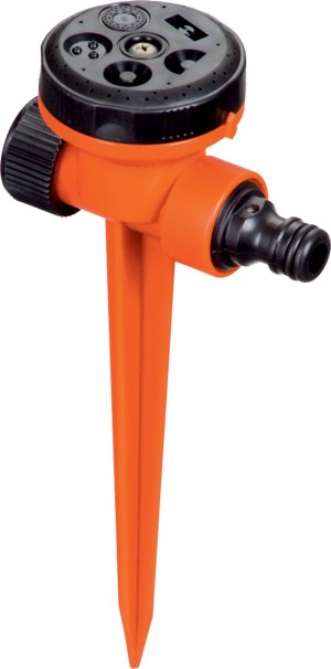 Zavlažovač multifunkčný s hrotom z kvalitného plastu, ktorý má päť funkcií kropenia. Vhodné pre malé a stredné plochy. Maximálny priemer zavlažovacie plochy 10m.