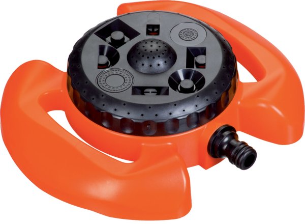 Multifunkčná trávnikový zavlažovač s veľkým podstavcom a nastaviteľnými kropícími tryskami pre kropenie trávnika, záhonov, kríkov atď. Vhodné pre malé a stredné plochy. Ponúka 8 - funkcií možného zavlažovanie. Maximálny priemer zavlažovacie plochy 10m.
