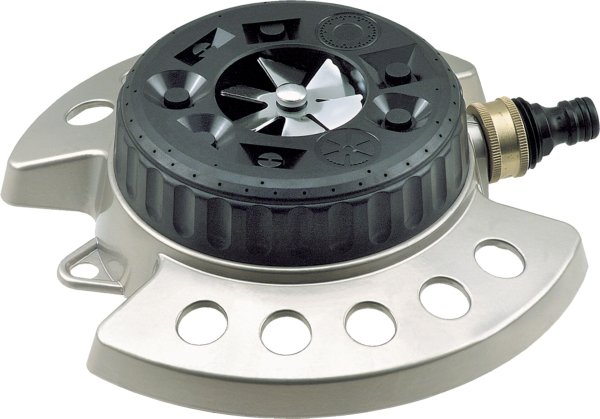 Multifunkčná trávnikový zavlažovač s veľkým podstavcom a nastaviteľnými kropícími tryskami pre kropenie trávnika, záhonov, kríkov atď. Vhodné pre malé a stredné plochy. Ponúka 9 - funkcií možného zavlažovanie. Maximálny priemer zavlažovacie plochy 10m.