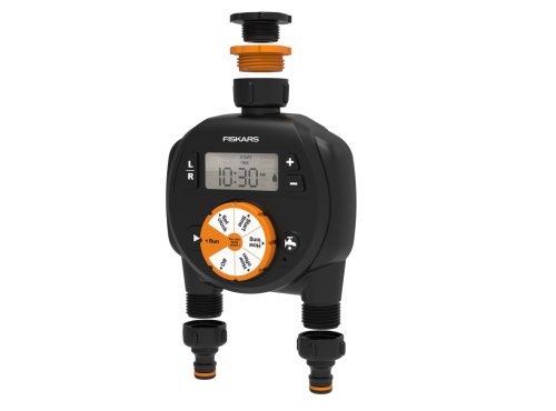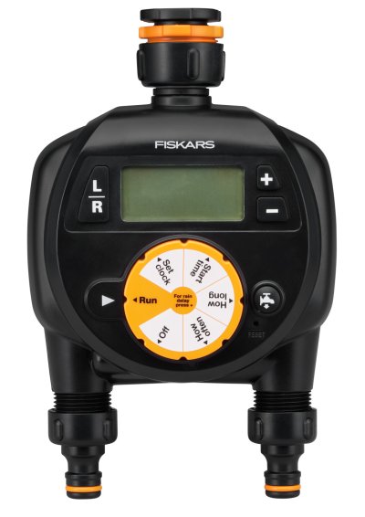 Zavlažovanie je možné naprogramovať nezávisle pre každý výstup. Ľahko programovateľný čas zahájenia, doba trvania, frekvencia zavlažovania, oneskorenie zavlažovania, vr. možnosti okamžitého ručného zavlažovania. Spojka ku kohútiku multi obsahuje tri veľkosti závitov, ktoré vyhovujú väčšine bežných vodovodných kohútikov: ( 1/2, 3/4, 1). Ochrana proti vybitiu zastaví zavlažovanie v prípade slabej batérie. Napájanie s 2x AA batériami. (Batérie nie sú súčasťou balenia.) Univerzálne pripojenie je kompatibilné s ostatnými značkami. Nie je mrazuvzdorné. Výška: 22,2 cm, dĺžka: 8,3 cm, šírka: 15 cm. Hmotnosť: 0,58 kg.