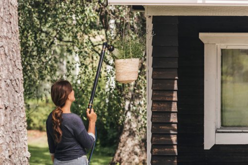 Zavlažovacia tyč je vybavená troma obľúbenými typmi zavlažovania, hlavu trysky je možné natáčať v rozmedzí 180 stupňov. Otáčaním výmennej hlavy trysky s povrchom SoftGrip je možné vybrať typy: tryska, hmla, sprcha. Regulácia prietoku palcom je ergonomická a plynule nastaviteľná. Pohodlne sa drží, dokonca aj za chladného počasia, v porovnaní s kovovými dielmi na zavlažovanie. Univerzálne pripojenie je kompatibilné s ostatnými značkami. Výška: 87,8 cm, dĺžka: 12,8 cm, šírka: 5,6 cm. Hmotnosť: 0,44 kg.