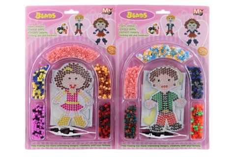 Zažehľovacie korálky s motívom chlapec/dievča (2druhy - dodávame podľa skladovej dostupnosti). Materiál plast. Balené na karte. Rozmery balenia 21x33x2,5 cm. Vek 3+