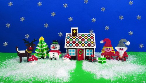 Zažehľovacia sada s 5000 korálkami, doštičkou a predlohami. Pozvite rodinu alebo priateľov a vytvorte perníkovú chalúpku z korálikov. Sada, ktorá obsahuje všetko potrebné na vytvorenie útulného vianočného prostredia. Vianočný stromček, vianočné darčeky, snehuliak, elfovia a Rudolf.