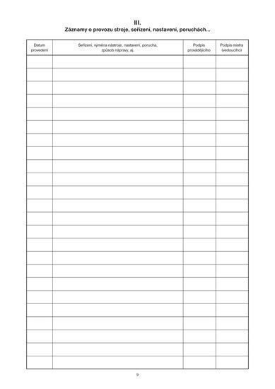 Záznamník prevádzky tvárniaceho stroja, A4, 12 listov