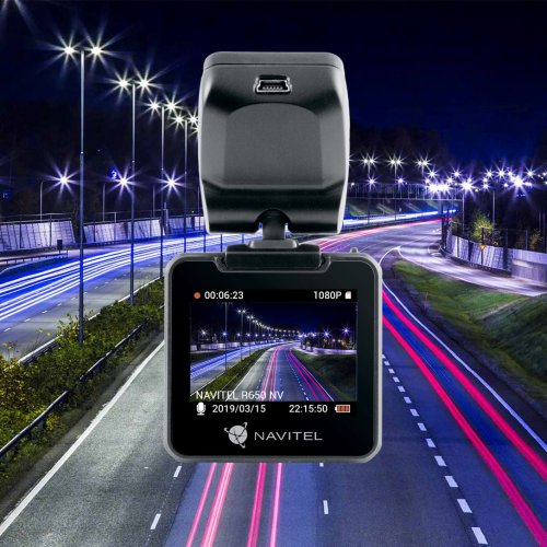 NAVITEĽ R650 Night Vision je záznamová kamera s moderným senzorom SONY 307 (nočné videnie) a sklenenou optikou, ktorá umožňuje nahrávanie detailných snímok aj pri slabom osvetlení alebo v noci.