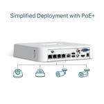 Na záznamovom zariadení nájdete štyri 10/100 Mb/s PoE+ porty . Každý z nich má výkon 30 W. Celkový PoE výkon switchu dosahuje 53 W. Pomocou jediného ethernetového kábla prenáša dáta aj napájanie. Nepotrebujete teda žiadny ďalší napájací adaptér.