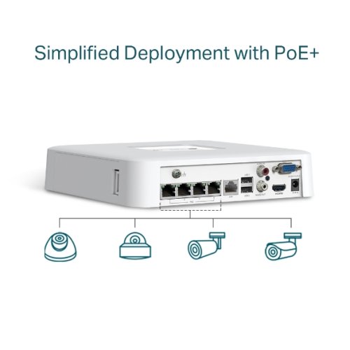 Zariadenie TP-Link VIGI NVR1104H-4P s 4K HDMI video výstupom zaznamenáva videá z bezpečnostných kamier a uľahčuje ich správu. Poskytne vám vysoké rozlíšenie obrazu až 8MP . Strážite si dianie na svojom pozemku či vo svojom podniku (predajňa, sklad, reštaurácia, penzión). 4kanálový displej vám zobrazí zábery zo 4 kamier naraz . Neutečie vám teda žiadny detail.